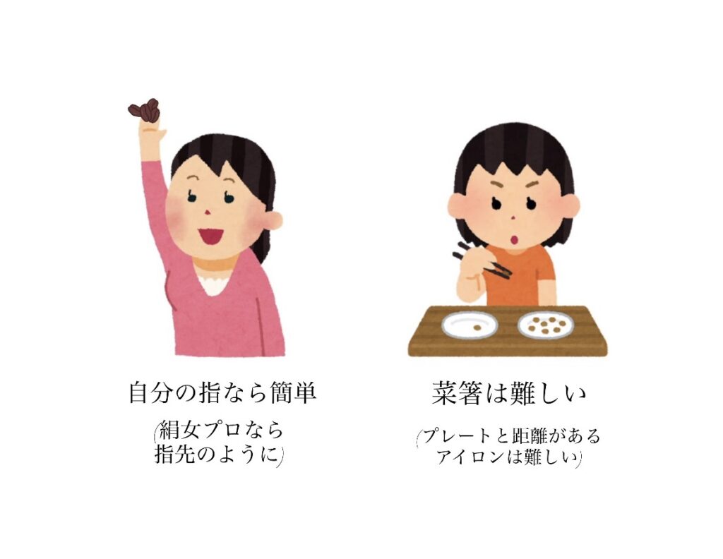 もしあなたが、アイロン苦手と感じているなら、それは菜箸で小豆をつかもうとしているからかも。