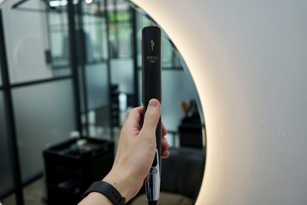 実際にサロンで使用したお客様も「いつもより顔周りが巻きやすい!」「自分でも美容室帰りの髪みたい!」「シャンプーのCMみたい!」と言う声が上がるほど、KINUJO特有の艶髪はそのままに簡単に扱える要素が増したイメージです。女性にとって前髪は命と言っても過言では無いですよね、、、そんなところまで寄り添えるこのアイロンはまさにプロ仕様! プロ(美容師)が使うものでもあり、お家でもプロのような仕上がりに近づけられるのではないでしょうか。