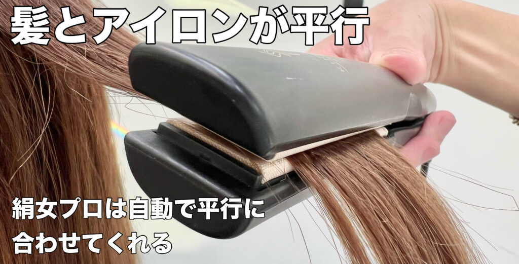 ヘアアイロンの正しい使い方として、平行に髪の毛を挟むことが大事です。しかし、美容師でも難しいことを私たちでもできるかな、、、と思いませんか。特に後ろは見えづらかったり、手が届きにくい経験あると思います。